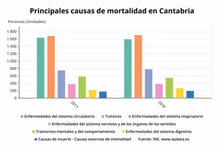 Las enfermedades del sistema circulatorio fueron causa de 1.590 muertes en Cantabria en 2018, un 2,8% menos que el año anterior, destacando por casos las cerebrovasculares (370 casos); y las del sistema respiratorio contabilizaron 780 fallecimientos, un 3,7% más, la mayoría (178) por enfermedades crónicas.