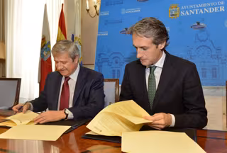 El alcalde de Santander, Iñigo de la Serna, y el presidente de Correos, Javier Cuesta Nuin, han rubricado este miércoles un convenio de colaboración de cuatro años para desarrollar proyectos en la smartcity y entre los cuales se pondrá en marcha en el primer año esta experiencia piloto de recogida de datos y aviso de incidencias.