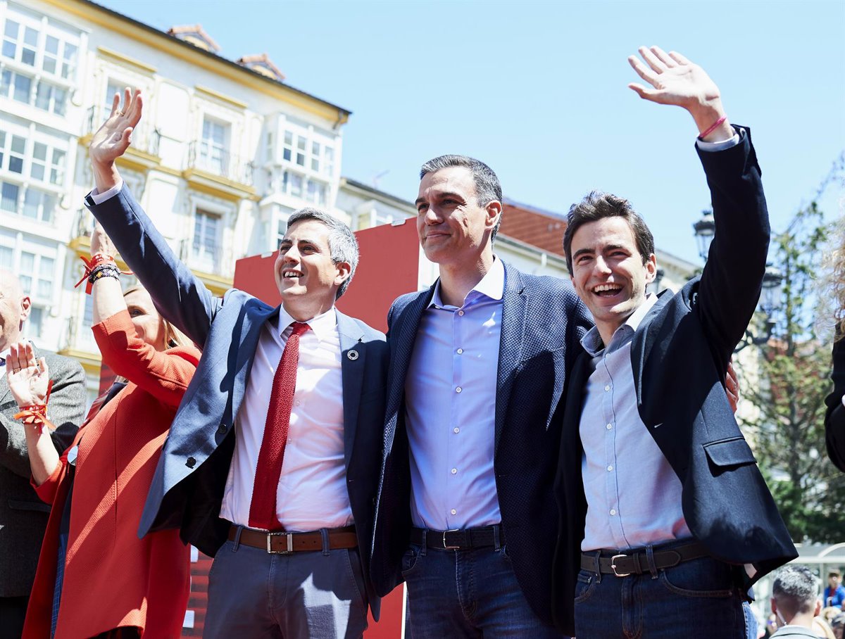 (I-D) El secretario general del PSOE-Cantabria y candidato del partido a la presidencia de la comunidad, Pablo Zuloaga, el presidente del Gobierno en funciones y secretario general del PSOE, Pedro Sánchez y el candidato del PSOE a la alcaldía de Santa - Juan Manuel Serrano Arce - Europa Press - Archivo