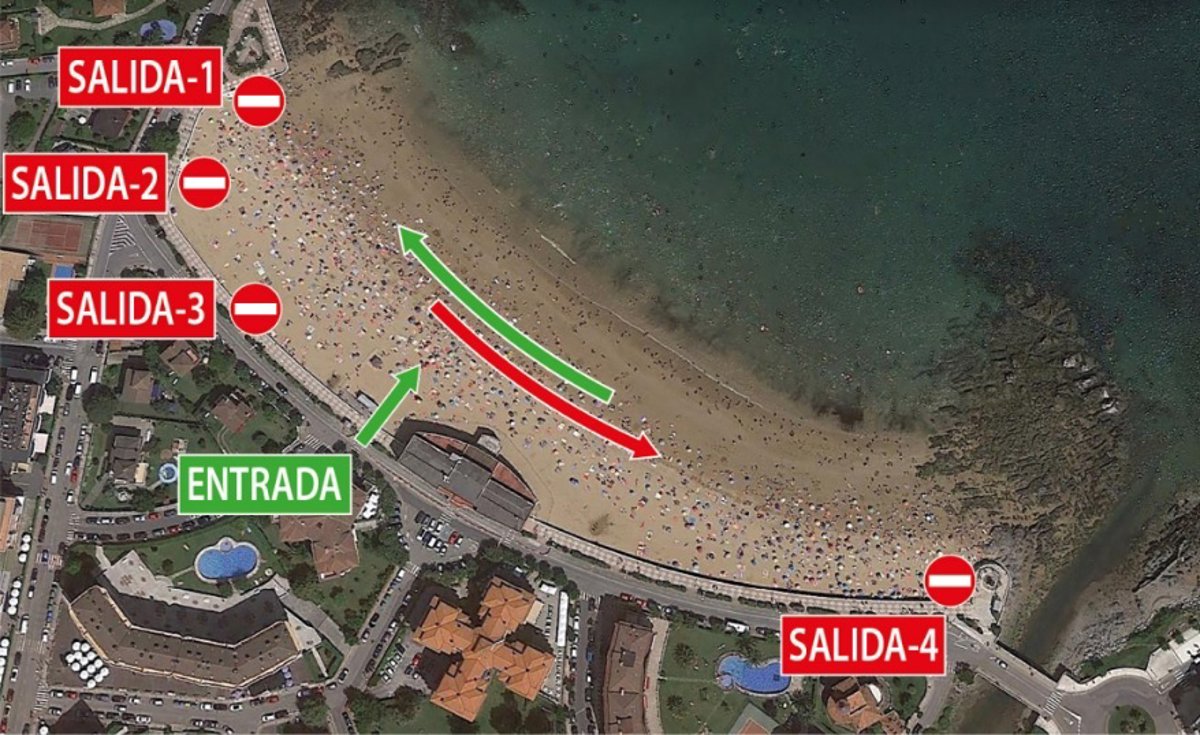 Las normas de uso de playas que contempla el plan consisten en utilizar las entradas y salidas de sentido único señalizadas, evitar aglomeraciones y no permanecer en la zona de baño más de tres horas, guardar la distancia social de dos metros en el agua y la arena, pasear por la orilla en el sentido de circulación previsto y usar las duchas por turnos individuales.