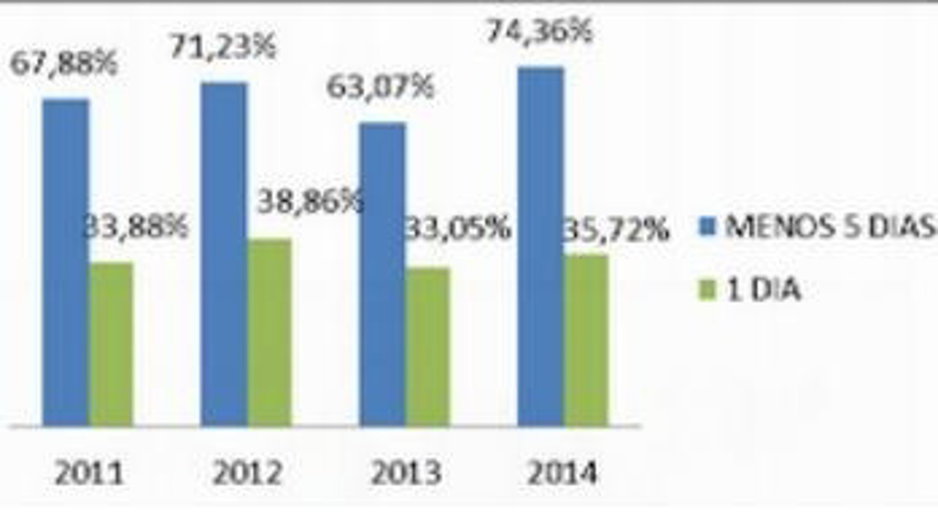El estudio ha sido elaborado teniendo en cuenta las altas en plantilla de los últimos cuatro años (2011-2014), un total de 6.492, de las que casi 7 de cada 10 son de una media de cinco días o menos.