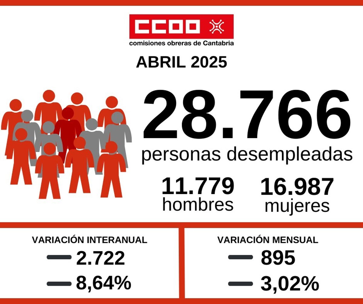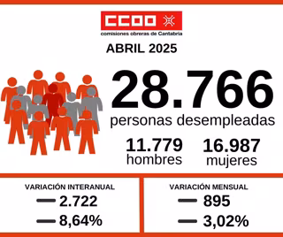 Gráfico de CCOO del desempleo en Cantabria en abril - CCOO