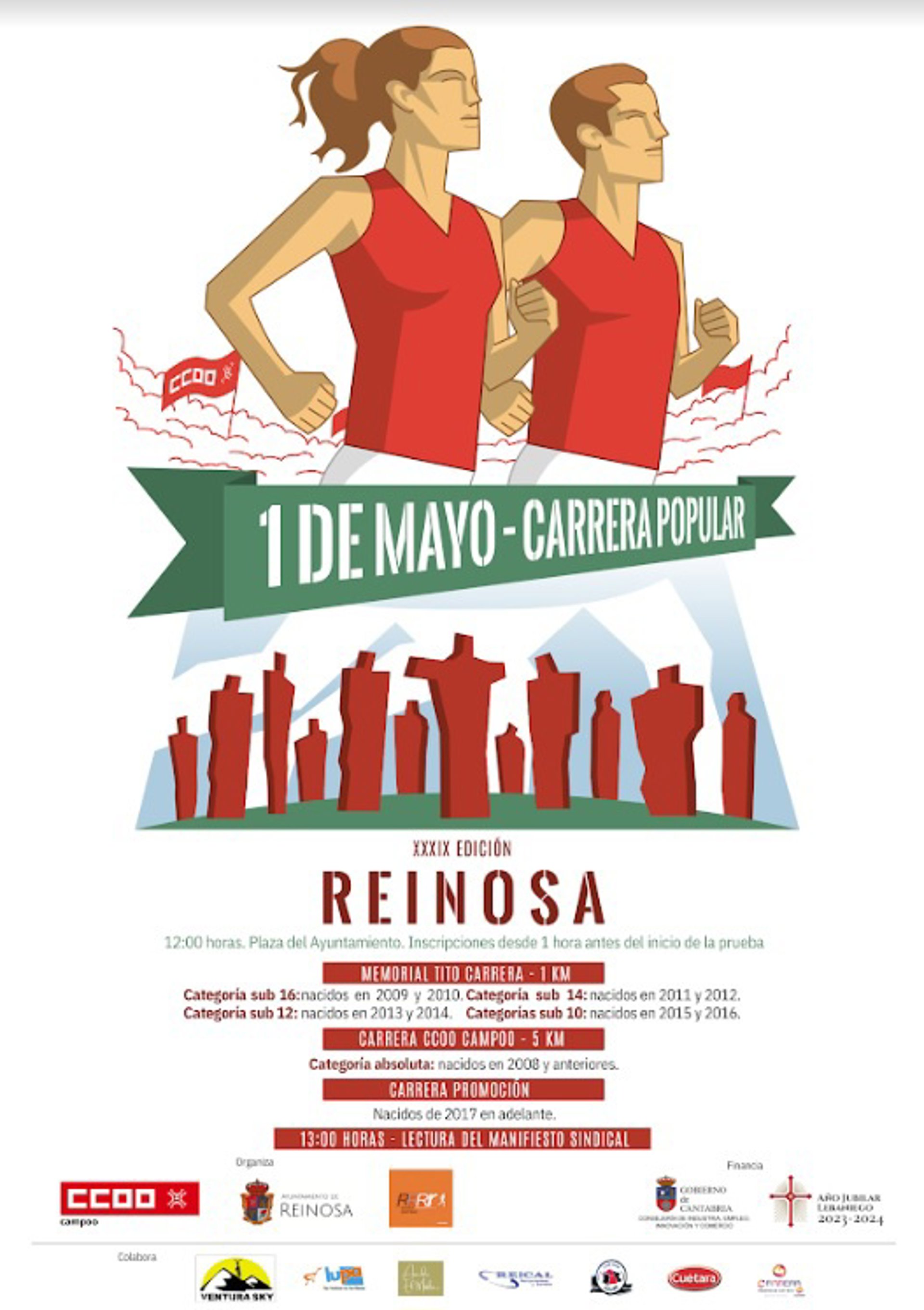 Carte de la 39 edición de la carrera popular del Primero de Mayo en Reinosa, organizada por CCOO - CCOO