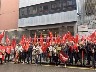 CCOO y UGT se concentral frente a la patronal cántabra para reivindicar la reducción de la jornada laboral. - EUROPA PRESS