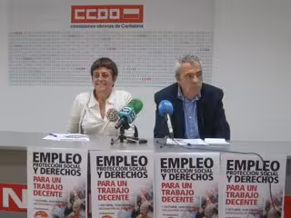 Así lo han manifestado este lunes los secretarios generales de CCOO y UGT en Cantabria, Carlos Sánchez y María Jesús Cedrún, en una rueda de prensa en la que han presentado la concentración, que se desarrollará bajo el lema 'Empleo, protección social y derechos. Para un trabajo decente'.