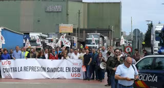 Los asistentes a la concentración convocada por USO portaban una pancarta con el lema 'Contra la represión sindical en GSW'. Entre los mismos se encontraban los dos trabajadores despedidos, que recibieron múltiples muestras de solidaridad y apoyo de los presentes.
