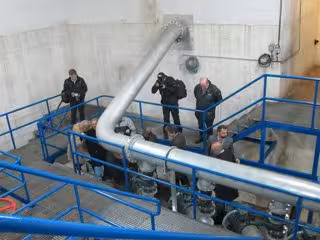 En la visita de este miércoles, De la Serna ha visitado junto con los vecinos de la zona el depósito del Avellano, uno de los nueve de Santander, donde han podido observar algunas de las nuevas instalaciones y tuberías colocadas.