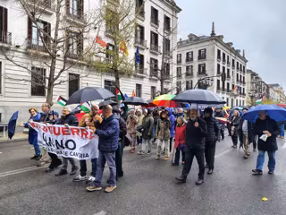 Cerca de medio millar de personas según los convocantes --aunque la Policía Local lo sitúa en cerca de 300-- ha desafiado este mediodía a la lluvia en Santander para pedir el fin de la guerra en Oriente Medio, de la que se cumple un mes, y del "genocidio" en Gaza.