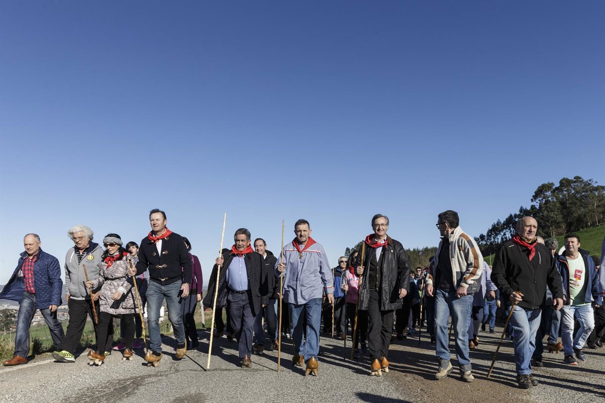 El presidente de Cantabria, Miguel Ángel Revilla, ha cumplido nuevamente su tradición de participar en la Subida en Albarcas a La Montaña, que cada año tiene lugar por estas fechas con motivo de la festividad de San Blas y en la que han tomado parte, como es habitual, cientos de personas.