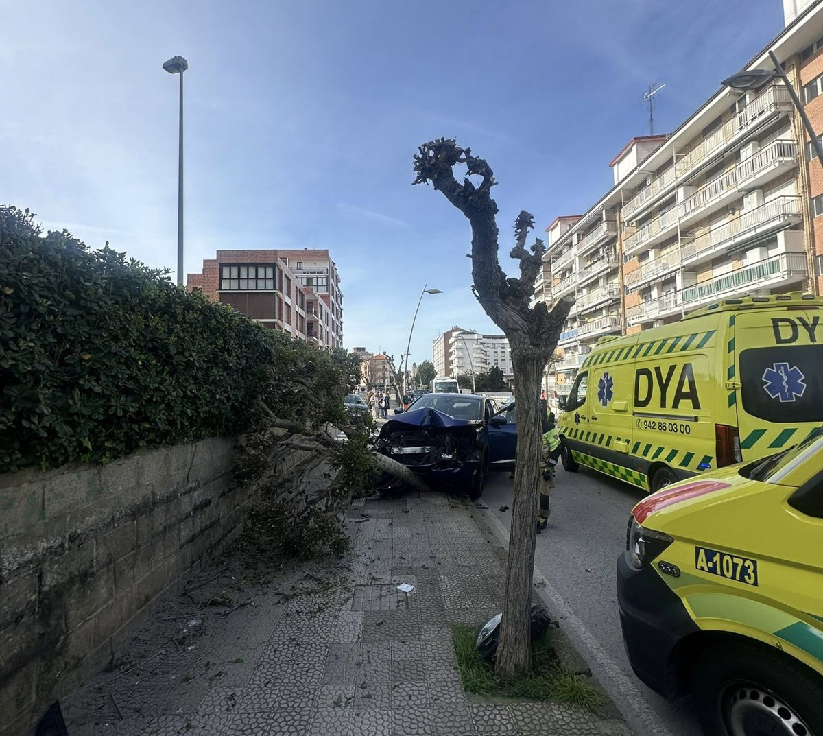 Un coche invade la acera, atropella a un peatón y se choca contra un árbol en Castro Urdiales. - DYA