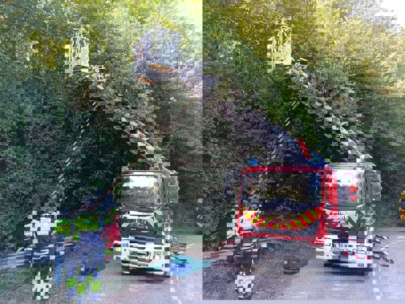Un coche se sale de la vía con cuatro ocupantes y uno tiene que ser rescatado por los bomberos - 112 CANTABRIA