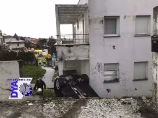 Debido a la presencia del granizo en la calzada, el vehículo ha patinado y perdido el control, chocando contra el muro de una vivienda y cayendo al jardín de la misma, donde ha quedado volcado.