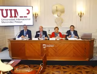 En esta inauguración también han intervenido la consejera de Sanidad de Cantabria, María Luisa Real, el presidente del Consejo General de Colegios Oficiales de Farmacéuticos, Jesús Aguilar Santamaría, y el rector de la UIMP, César Nombela.