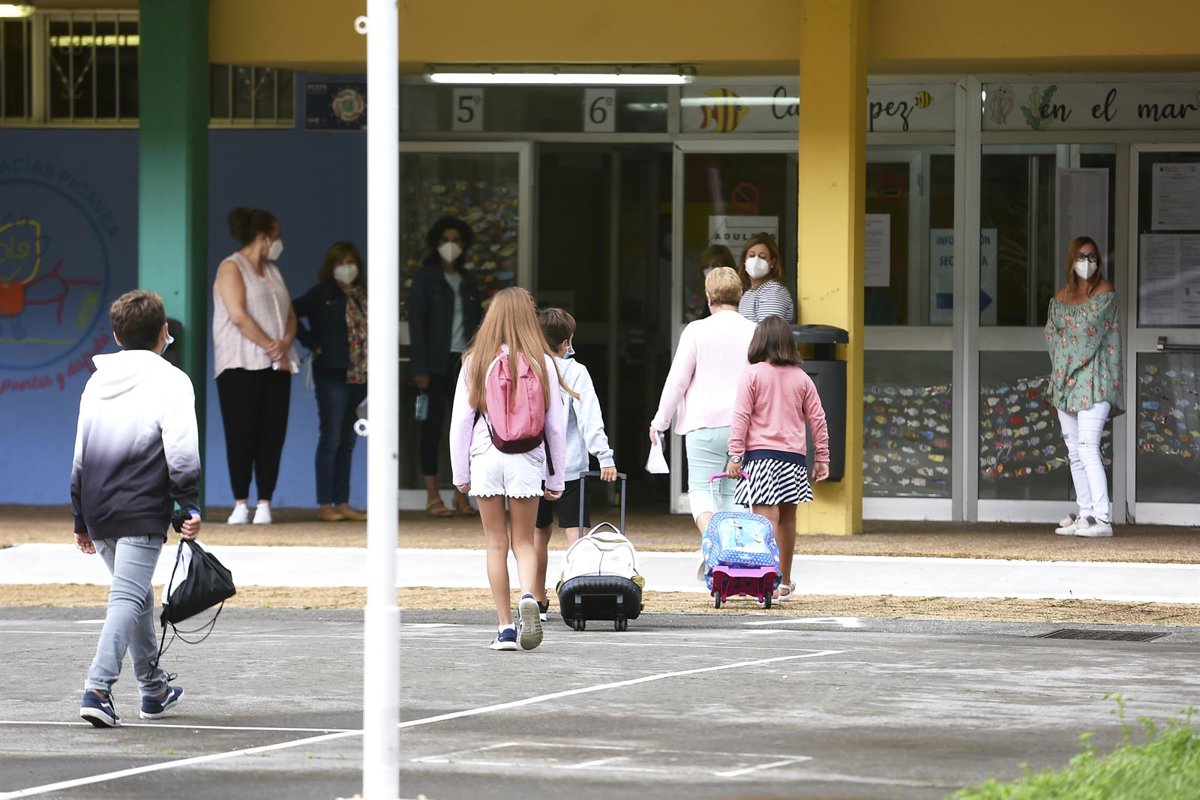 Varios alumnos acuden al CEIP. R.Macías Picavea en el primer día del curso escolar 2020-2021, en Santoña (Cantabria). - Juan Manuel Serrano Arce - Europa Press