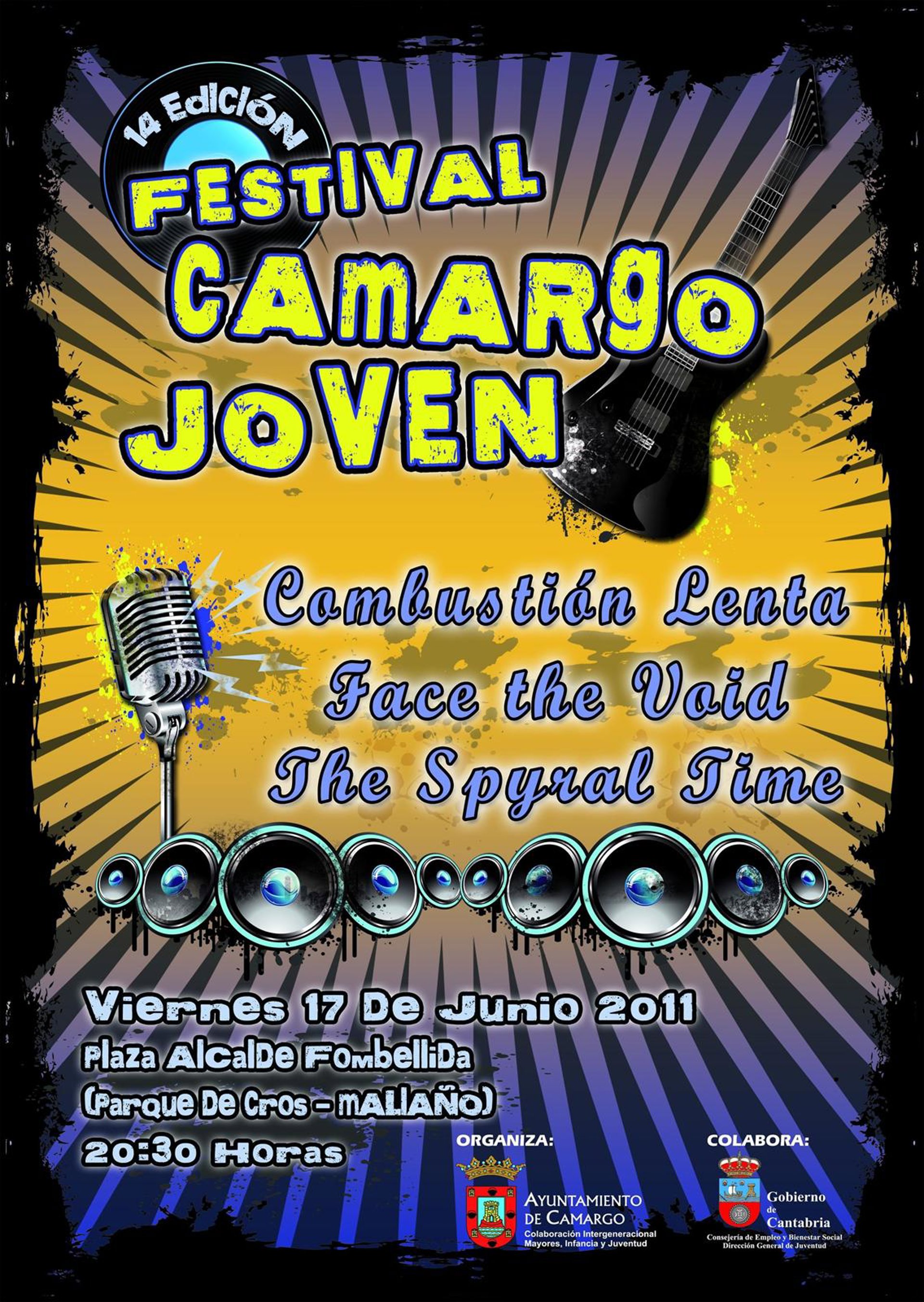 Los grupos Combustión Lenta, Face the Void y The Spyral Time serán los protagonistas de la decimocuarta edición del Festival de Música Camargo Joven, que se celebrará este viernes, día 17, a partir de las ocho y media de la tarde, en la Plaza Alcalde Silvio Fombellida del Parque de Cros, dentro de las fiestas de San Antonio y San Juan.