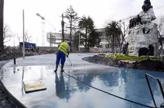 La instalación del nuevo pavimento de hormigón azulado con motivo de la remodelación y ampliación de los Jardines de Pereda de Santander que está llevando a cabo Renzo Piano y el paisajista Fernando Caruncho, ya ha comenzado y busca "evocar los colores de la Bahía"