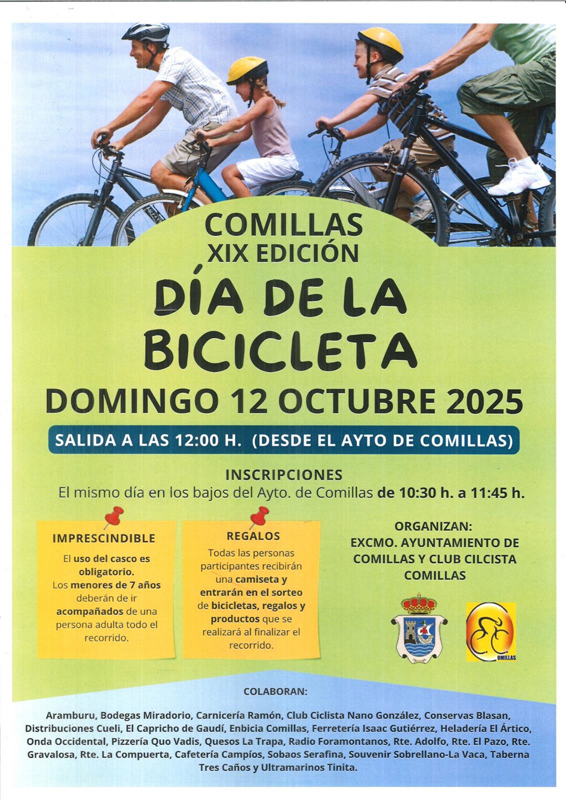 Comillas celebrará este domingo, 12 de octubre, la XIX edición del Día de la Bicicleta con un recorrido de unos seis kilómetros pensado para disfrutar del deporte en familia y del entorno natural del municipio.