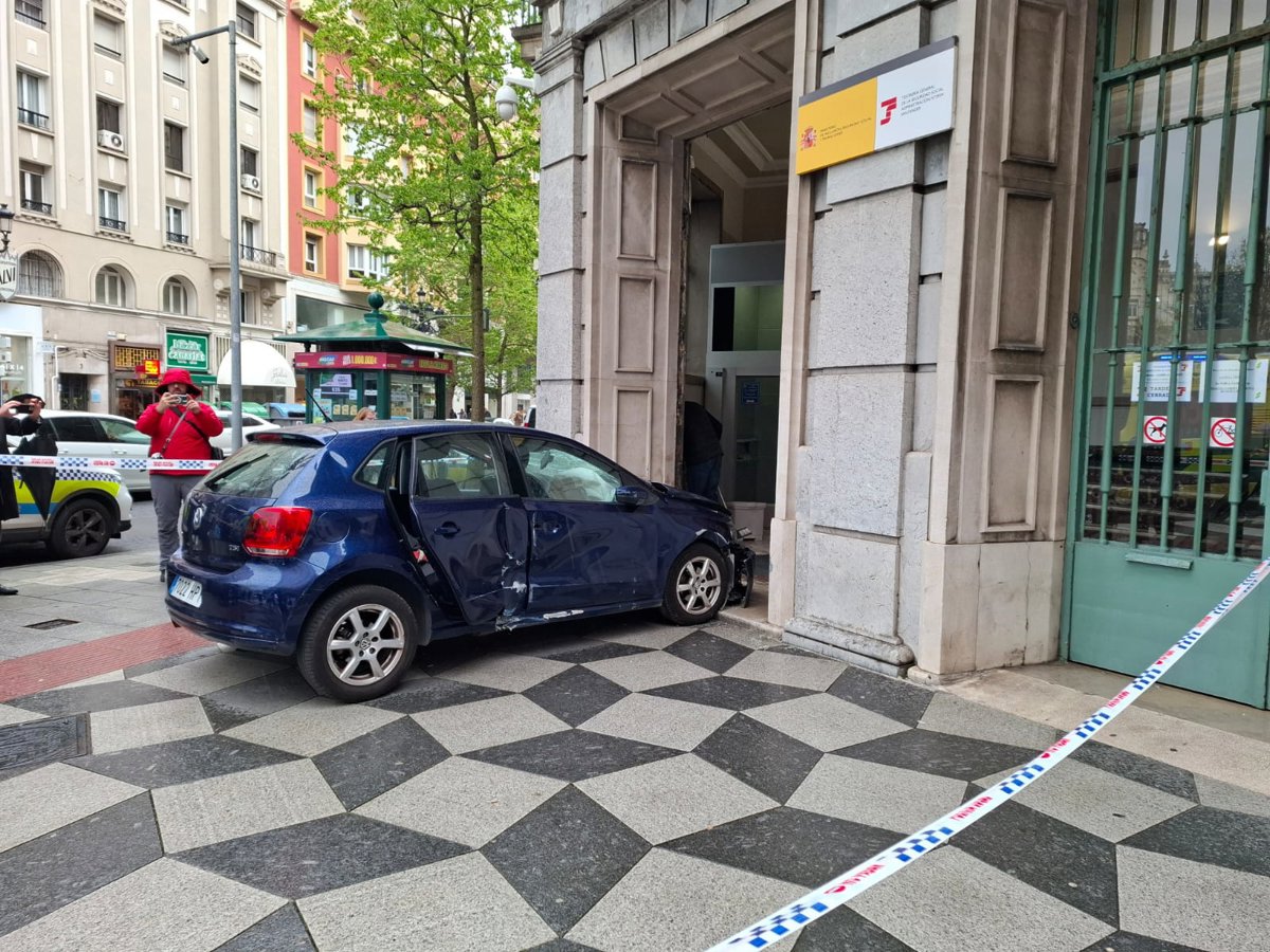 Una conductora de 74 años ha empotrado su coche contra la fachada de la sede de la Seguridad Social en Santander, situada en la calle Calvo Sotelo, en pleno centro de la ciudad.