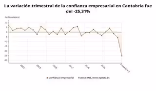 El Índice de Confianza Empresarial Armonizado (ICEA), cuya publicación corresponde al Instituto Nacional de Estadística (INE), ha caído un -25,3% en Cantabria en el segundo trimestre de este año respecto al trimestre anterior.