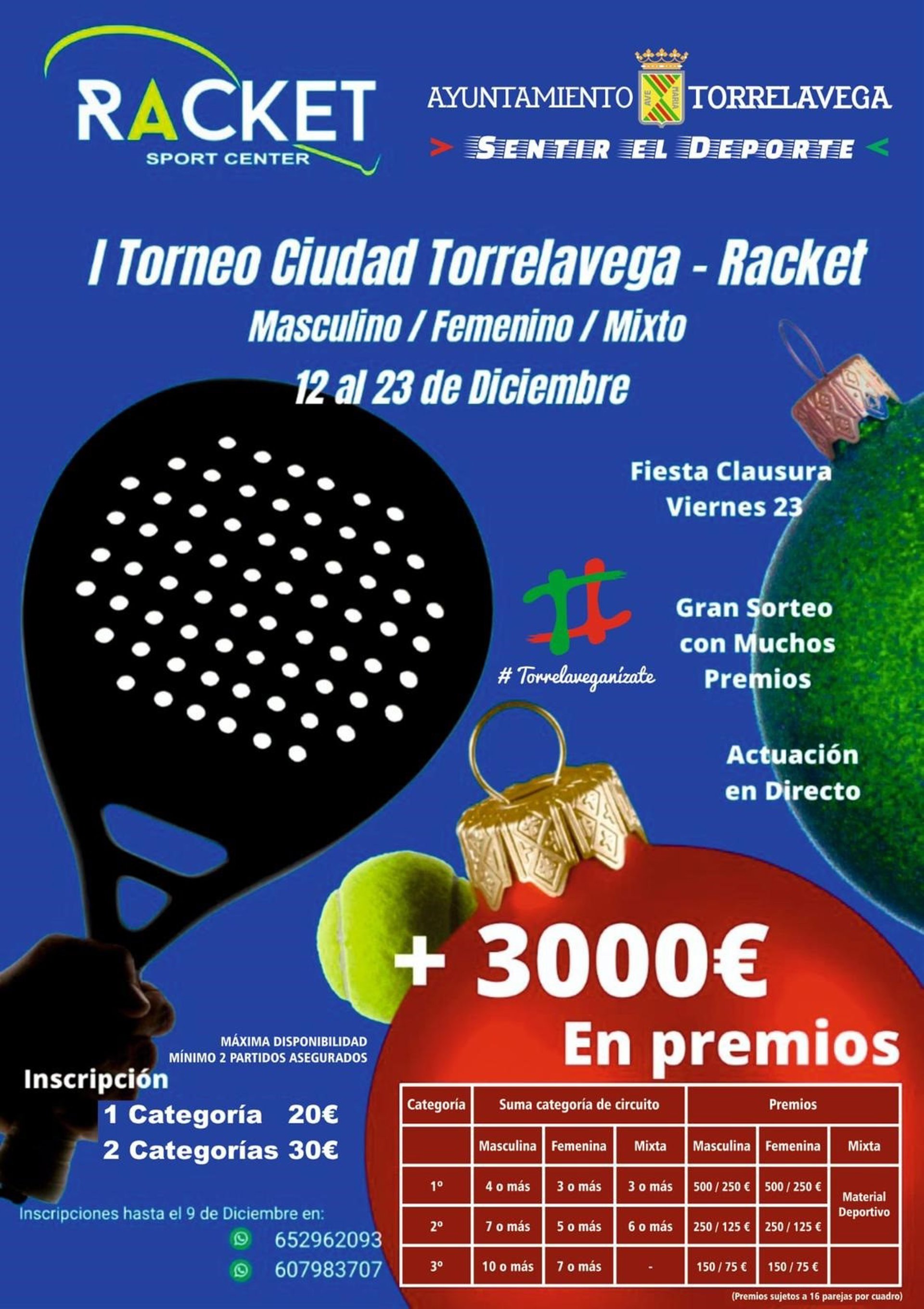 Un total de 150 parejas en categorías masculina y femenina están confirmadas, hasta el momento, en el I Torneo de Padel Ciudad de Torrelavega-Racket, que se celebrará de 12 al 23 de diciembre en las instalaciones del Polígono Tanos-Viérnoles.