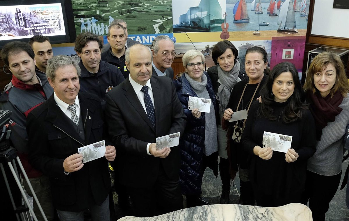 El sello, que forma parte de la serie 'Efemérides' y tiene un precio 1,15 euros, se ha presentado este lunes en un acto en el Ayuntamiento de Santander al que han asistido representantes de los cuerpo de Bomberos, Bomberos Voluntarios y Policía Local, así como coleccionistas de filatelia.