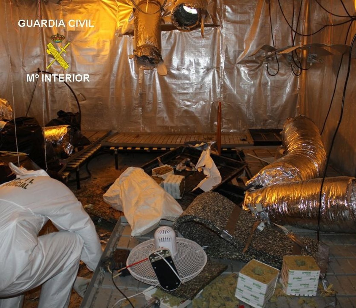 Estaba preparado y dotado de extractores de aire, lámparas especiales de gran potencia, bombas de agua, sistemas de riego de cultivo hidropónico, filtros, ventiladores, material aislante, decenas de metros de cableado para instalación eléctrica, termostatos, ventiladores y toda la instrumentación y herramienta útil para el cultivo, elaboración y preparación de la droga, como semillas, sacos de turba, botes de productos químicos, abonos, tiestos, junto con básculas de precisión o bolsas de almacenaje para su posterior distribución y venta.