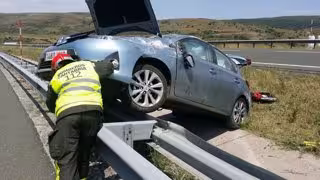 Esta circunstancia ha provocado que el turismo, que circulaba en dirección Santander, se saliera de la calzada atravesando el espacio divisorio entre sentidos y quedando con las ruedas delanteras subida en el guardarrail central de la autovía.