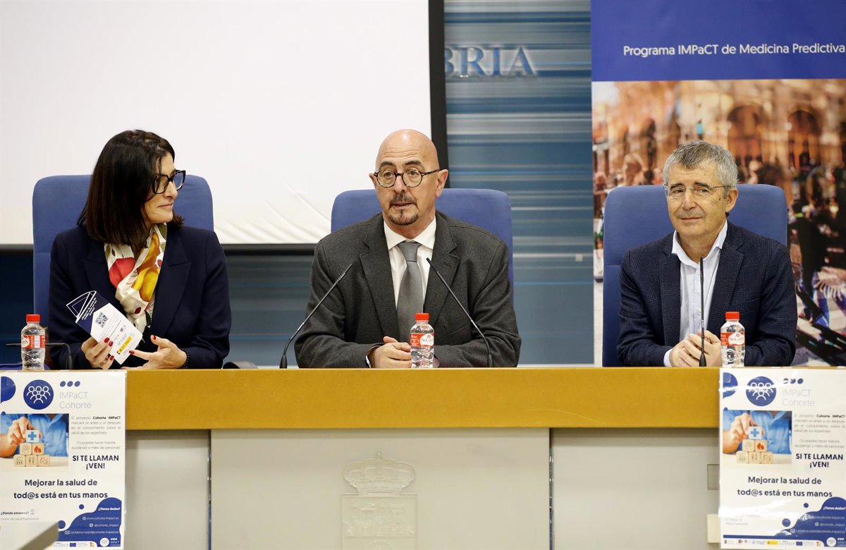 El consejero de Salud, César Pascual; el gerente del SCS, Luis Carretero, y la alcaldesa de Santander, Gema Igual, anuncian la participación de 4.000 cántabros en el proyecto 'Cohorte IMPaCT' - GOBIERNO DE CANTABRIA/ LARA REVILLA
