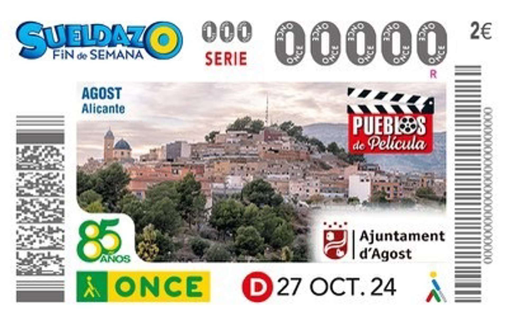 El cupón del domingo, que estaba dedicado a la localidad alicantina de Agost, dentro de la nueva serie monográfica que la ONCE dedica a 'Pueblos de película', ha dejado otros cupones premiados, además de en Cantabria, en Sevilla, en El Ejido (Almería) y Baleares.