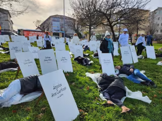 Bajo el sonido de las sirenas que alertaban de los ataques aéreos durante la Guerra Civil, varias personas se han tumbado junto a lápidas de cartón con los nombres y en muchos casos la edad de los fallecidos, en una reparación simbólica de las víctimas, ante la negativa del Ayuntamiento de Santander de instalar una placa-monolito en recuerdo de los hechos, han denunciado.