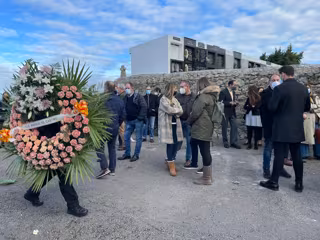 Tanatorio de Heras. Asistentes a la despedida de Severiano Ballesteros Lavín, exalcalde de Marina de Cudeyo, antes de su funeral y entierro en Rubayo - EUROPA PRESS