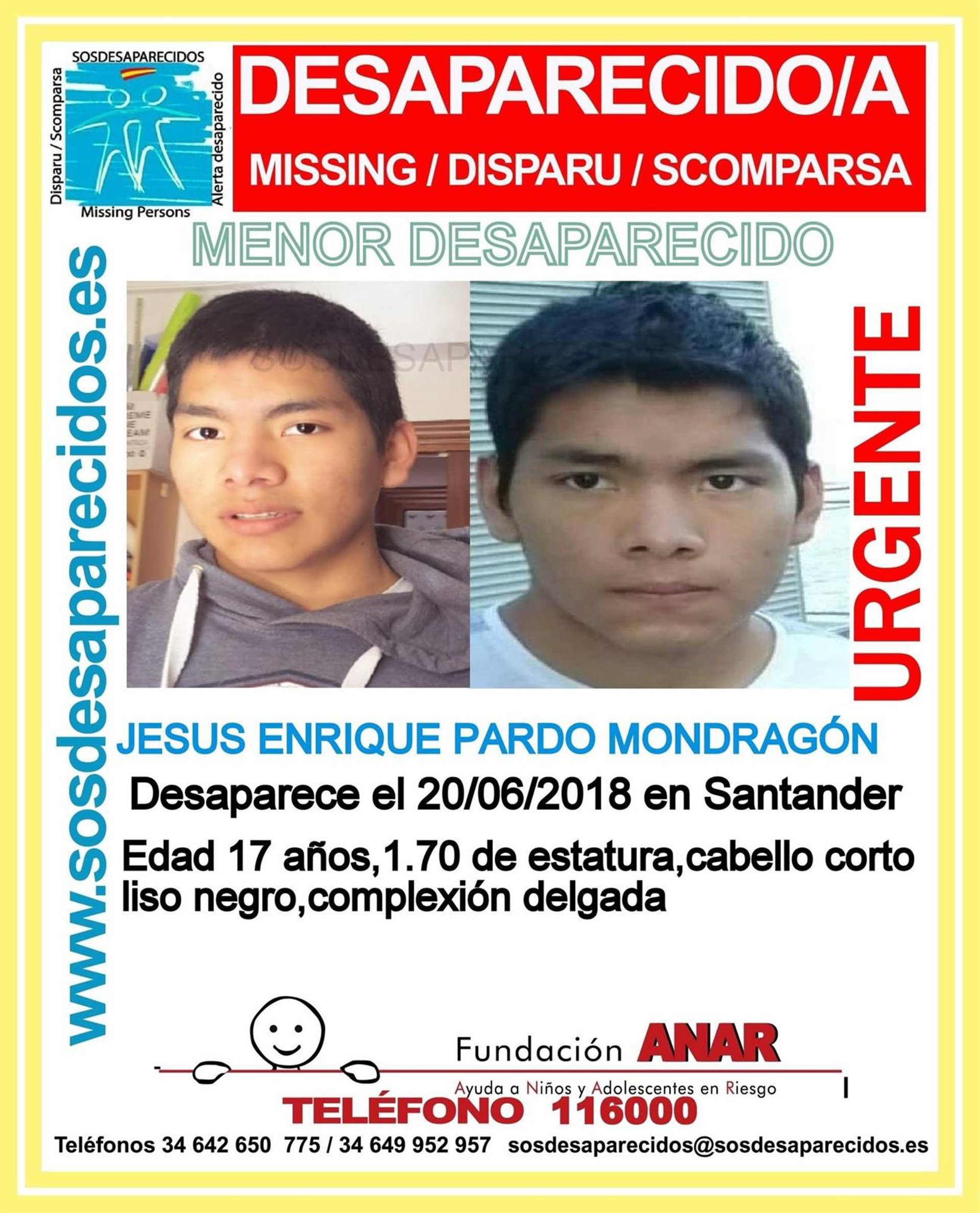 Según los avisos publicados en sosdesparecidos, el joven es Jesús Enrique Prado Mondragón, de 17 años de edad y 1,70 metros de estatura. Tiene el cabello corto, liso y negro y la complexión delgada. No se sabe de él desde el miércoles 20.