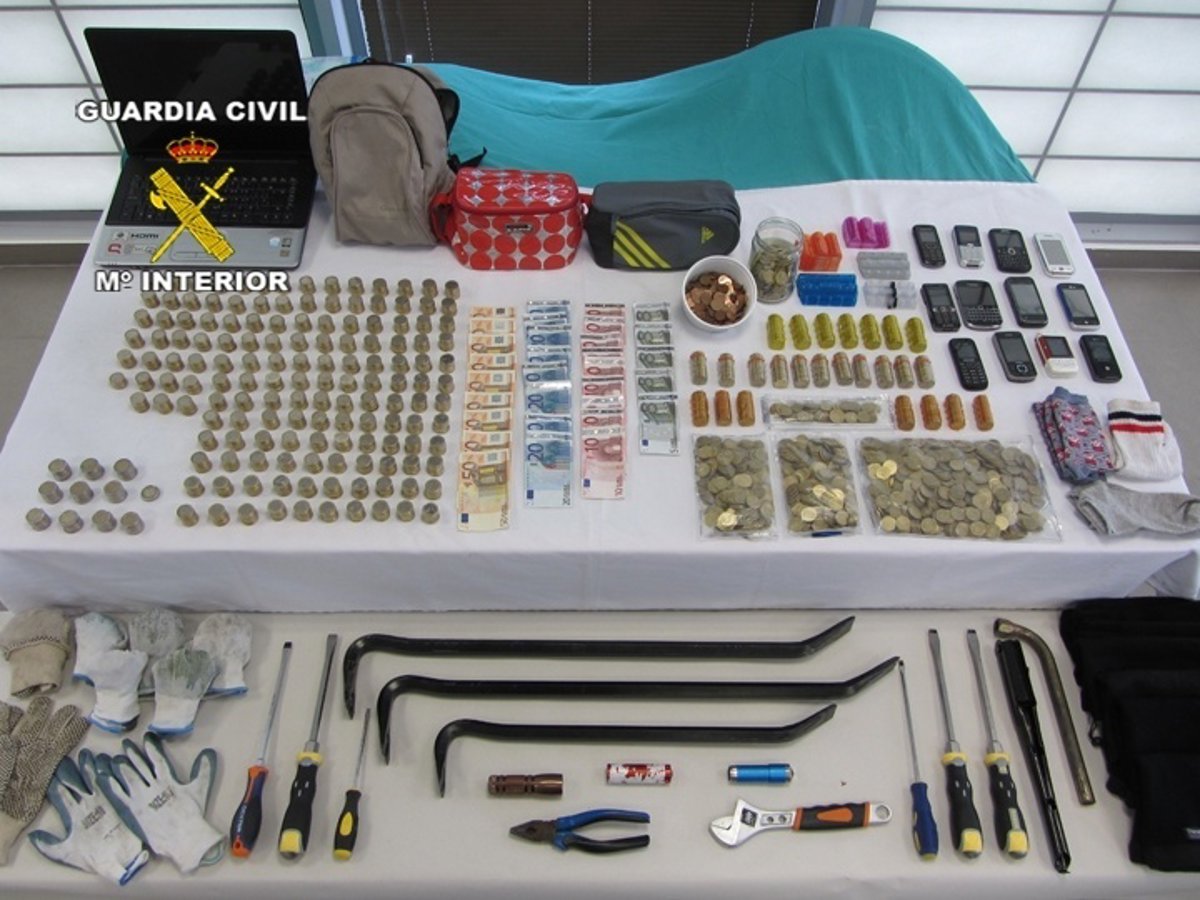 En ambos registros los guardias civiles encontraron herramientas y distintas prendas de vestir utilizadas en la comisión de hechos delictivos, 2500 euros en monedas así como blisters para almacenaje de estas.