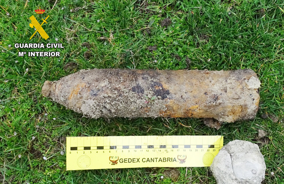 El proyectil fue localizado el pasado viernes por Bomberos Forestales del Gobierno de Cantabria, mientras realizaban trabajos en dicha zona, en un lugar alejado y sin peligro para personas o bienes, dando aviso del hallazgo.