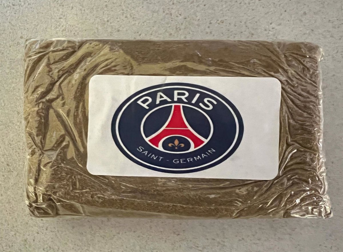 Un agente se dirigió al lugar donde había caído el objeto y comprobó que se trataba de un paquete perfectamente embalado, con una pegatina del PSG, que pesaba unos 100 gramos y que contenía una sustancia que parecía hachís.