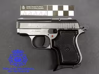 Fue finamente detenido e identificado y se le intervino una pistola de fogueo adaptada para percutir cartuchos de 6,35 mm. junto con un cargador y 7 cartuchos del calibre 22.