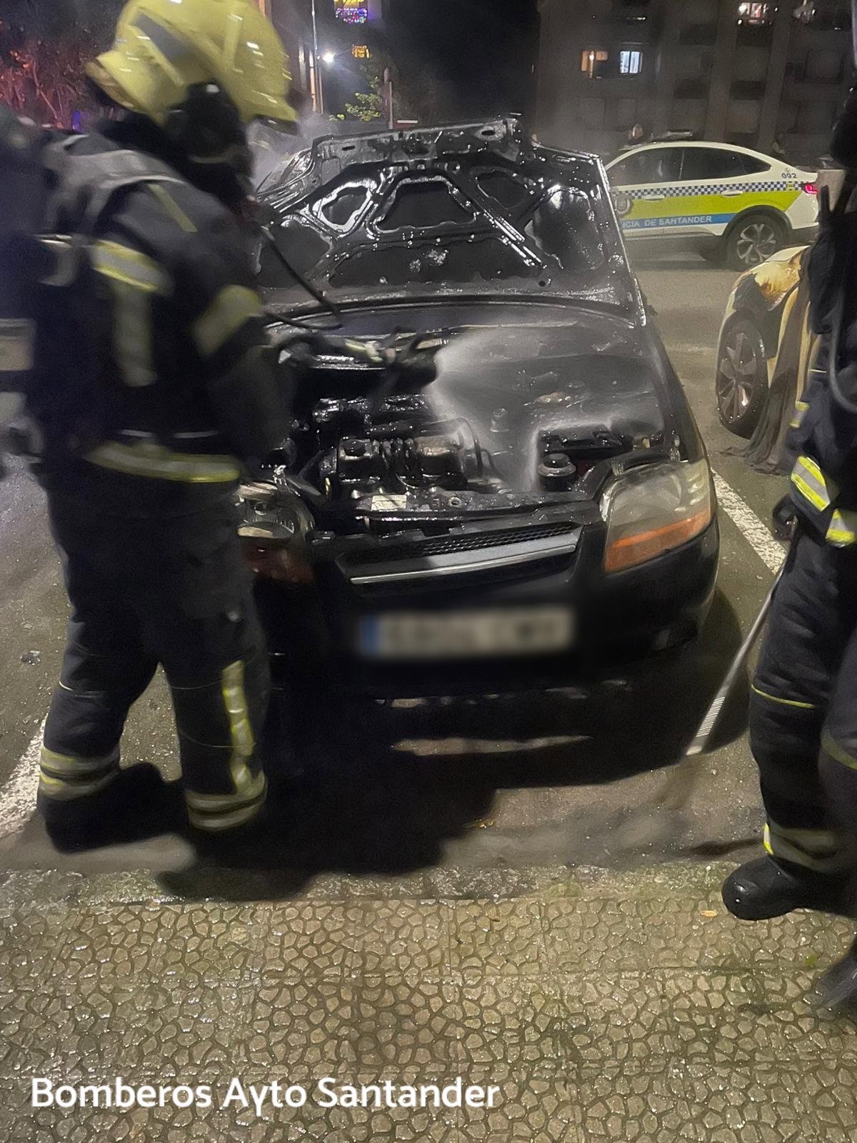 Archivo - Un vehículo calcinado - X BOMBEROS DE SANTANDER - Archivo