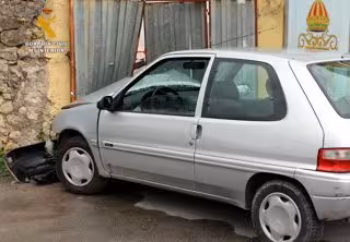 El vehículo se encontró sin llaves, sin conductor, presentando importantes daños tanto la puerta de la propiedad como en el propio coche.