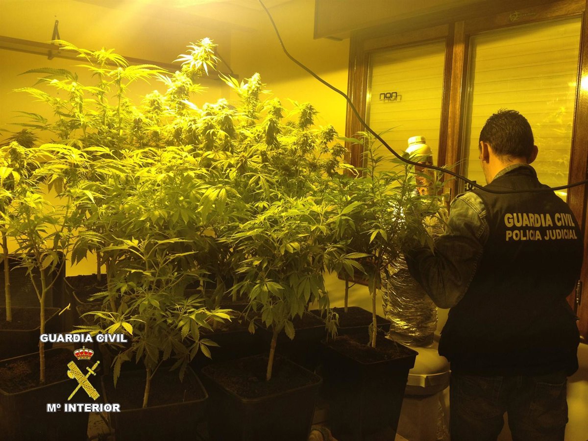 La Guardia Civil ha detenido en Castro Urdiales a un joven de 22 años, I.R.C., como presunto autor de un delito contra la salud pública, al encontrarle en su domicilio todo lo necesario para el cultivo "indoor" de marihuana, interviniendo 32 plantas en diferentes fases de crecimiento.
