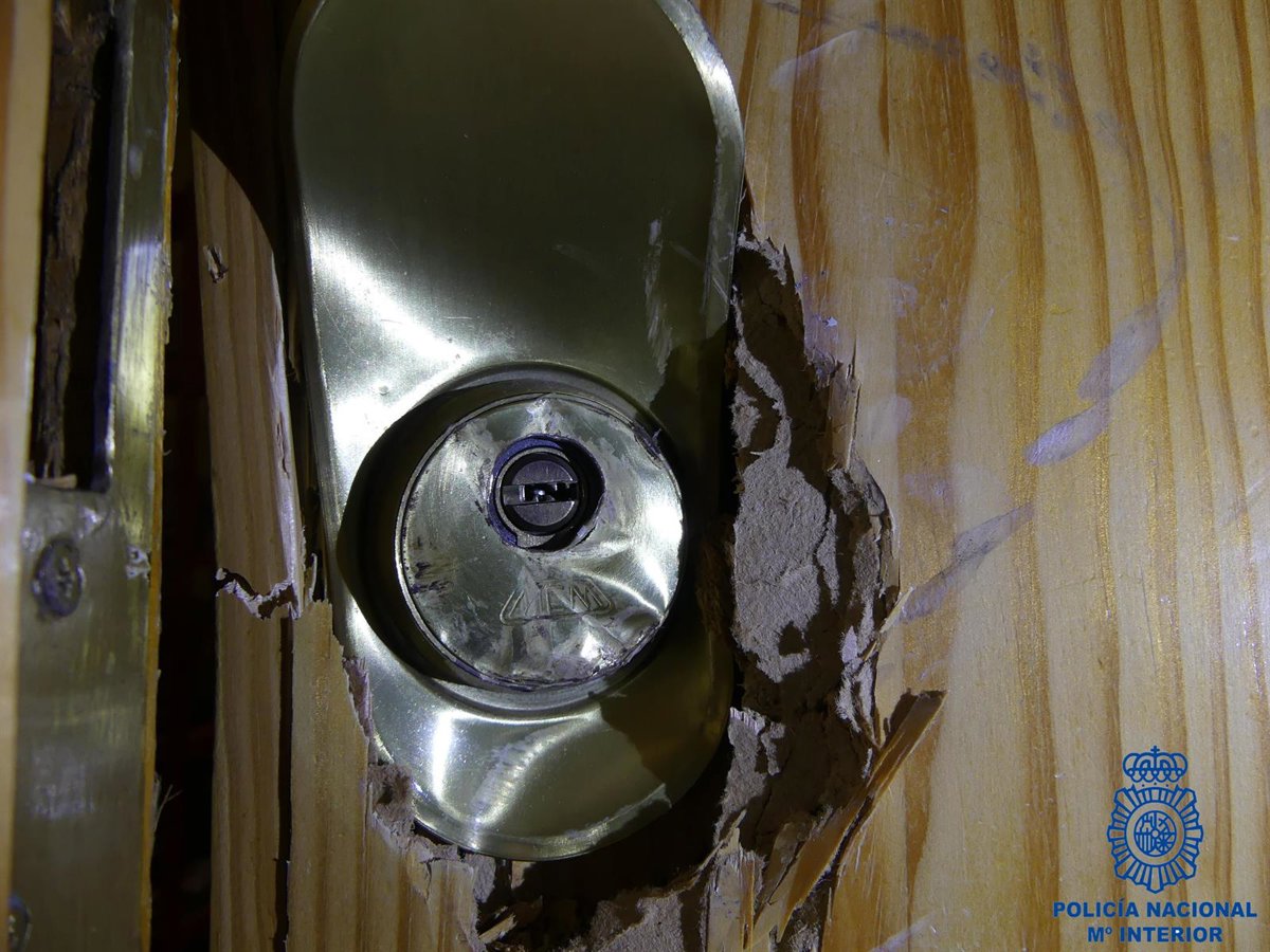 Al lugar acudieron varias dotaciones policiales, que comprobaron que el sospechoso ya no estaba en el lugar y procedieron a auxiliar a la víctima, ayudándola desde el exterior a abrir la puerta, observando cómo se encontraba el bombín fracturado, la manilla retirada y la puerta astillada.