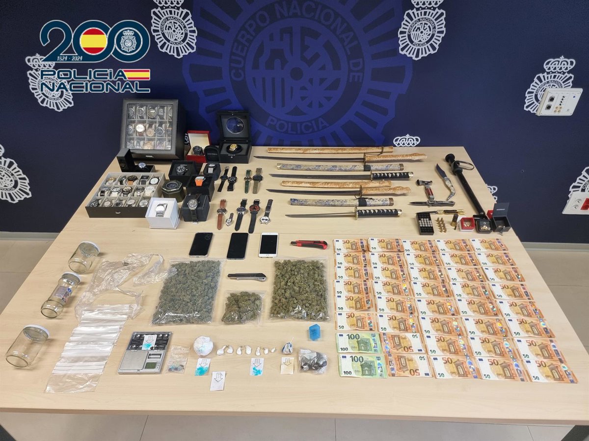 También encontraron "abundante" munición (cartuchos del 7,35 mm y 12 para escopeta); tres anillos y varios pendientes y cadenas de oro; 48 relojes de marca, cinco katanas, cuatro navajas automáticas y tres teléfonos móviles.