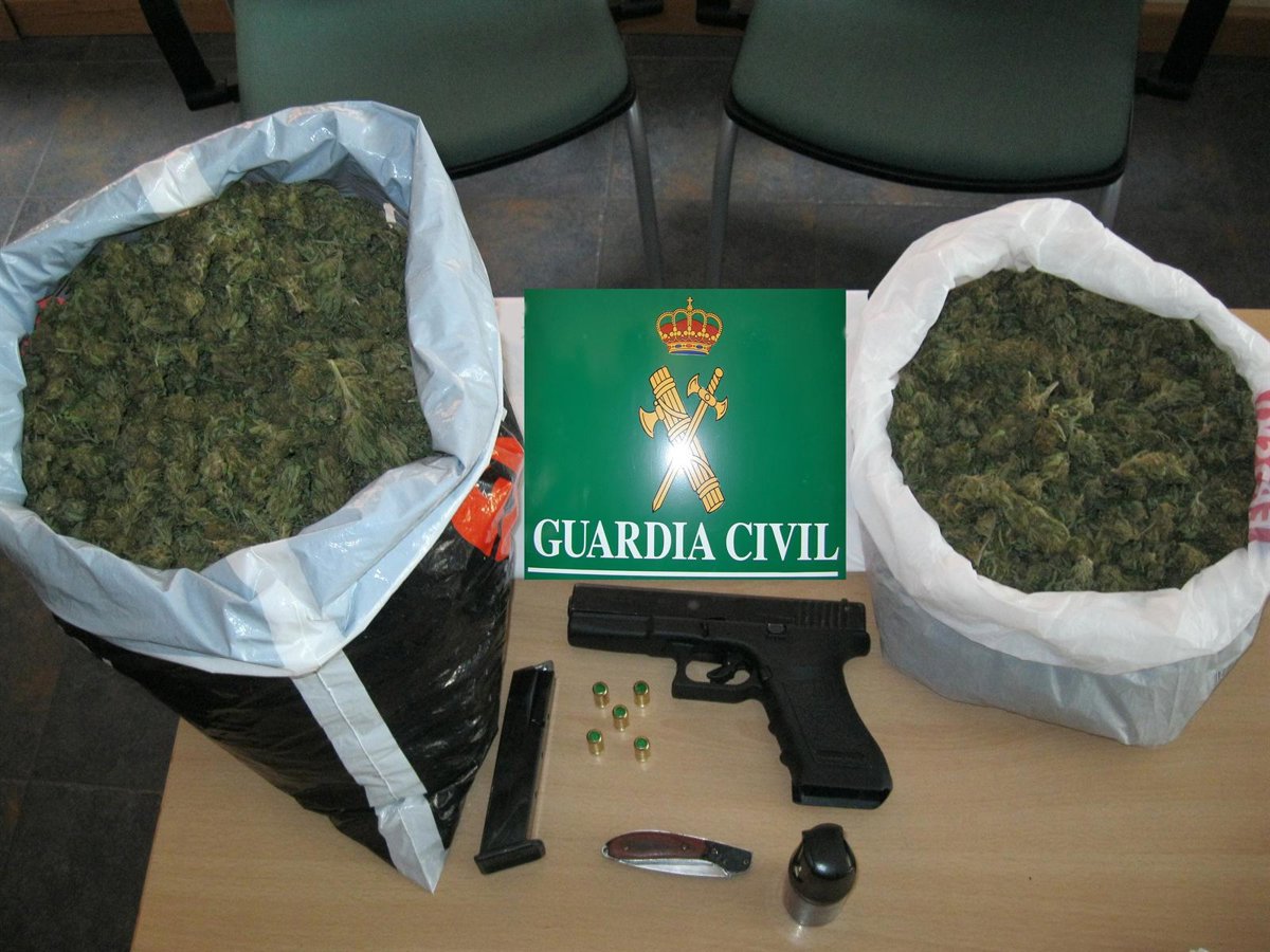 La Guardia Civil de Santoña ha detenido a tres hombres: J.A.M.B. y R.G.J.G., ambos de la República Dominicana, y R.D.J, español, como presuntos autores de un delito contra la salud pública al encontrarles en el coche en que viajaban 2,5 kilos de marihuana. También se les intervino un arma corta de fogueo con cinco cartuchos, un arma blanca y un spray de defensa personal.