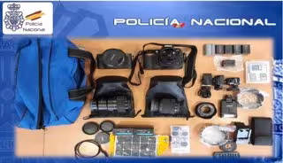 En el registro efectuado en dicho domicilio se intervino material relacionado con la fotografía, como cámaras, objetivos y tarjetas de memoria que fueron entregados a sus legítimos propietarios.