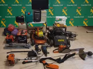 Por el momento se ha recuperado un televisor con DVD, dos CPU de ordenador, menaje de cocina, sacos de dormir, una máquina de coser, diferente maquinaria como desbrozadora, motosierra, corta césped, amoladoras, soldadoras, etc.