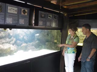 Por último, la directora general de la Fundación Biodiversidad vio los acuarios fluviales en los que se reproducen ejemplares vivos de nutria, salmón, trucha, y anguila. El Fluviarium se puede visitar en verano, de lunes a domingo, de 10 a 14 horas y de 16 a 21 horas. Desde su inauguración hace dos años, cerca de 30.000 personas lo han visto.