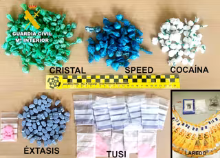 Entre las dos actuaciones se han intervenido 253 dosis preparadas para el menudeo de speed, cristal, cocaína, tusi (cocaína rosa) y éxtasis, así como dos envoltorios de diferente peso con ketamina, otro con 17 gramos de cristal sólido, tres pastillas pendientes de determinar la sustancia y casi 1.600 euros.