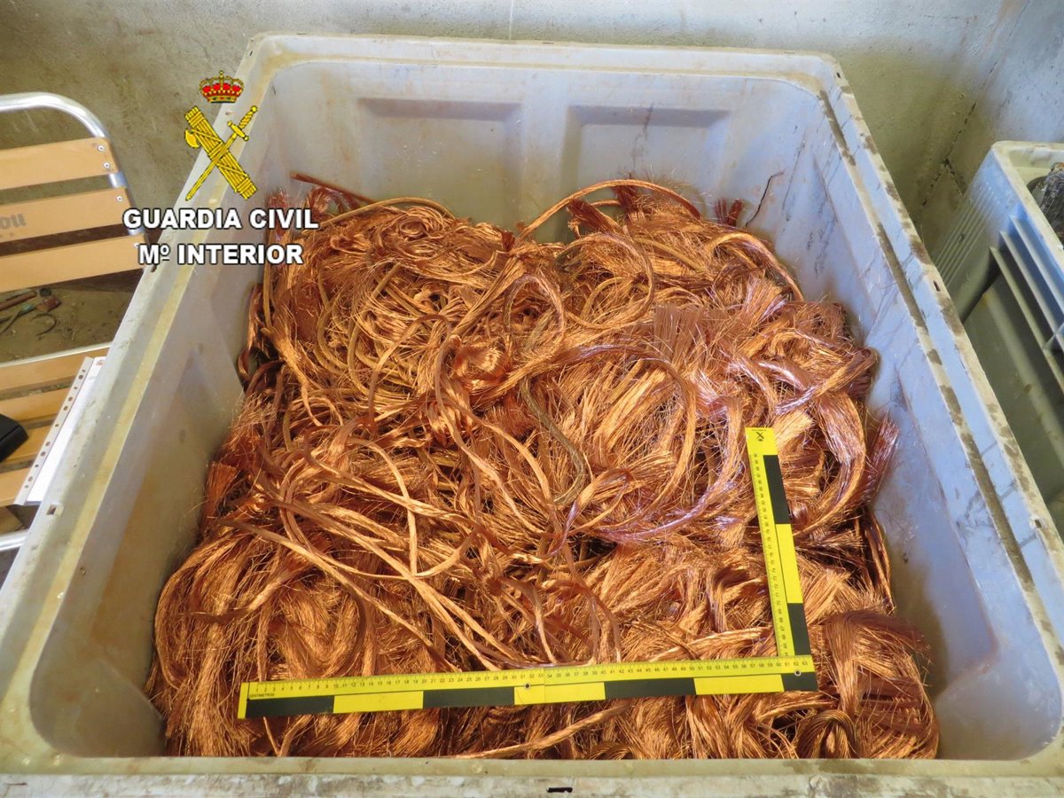 Archivo - Cable de cobre robado. Archivo - GUARDIA CIVIL - Archivo