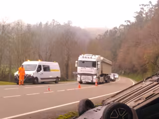 Dos de los coches han tenido un choque frontal y el tercero colisionó contra el talud, volcando posteriormente, informa el 112 Cantabria en la red social X.