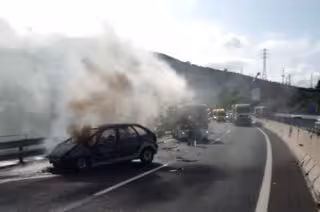 Una salida de vía de un vehículo en la Autovía del Cantábrico a la altura de Ontón (Castro Urdiales) y el posterior incendio del mismo se ha saldado este lunes por la tarde con los dos ocupantes del vehículo heridos leves y con hasta siete kilómetros de retenciones.