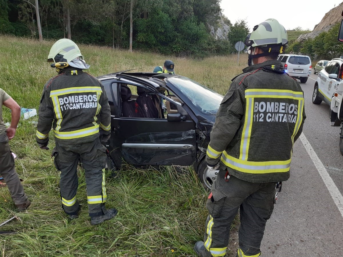 Dos hombres, de 45 y 54 años, han resultado heridos tras salirse de la vía y volcar el vehículo en el que viajaban en el kilómetro 10 de la CA-138, que une Cabezón de la Sal y Comillas.
